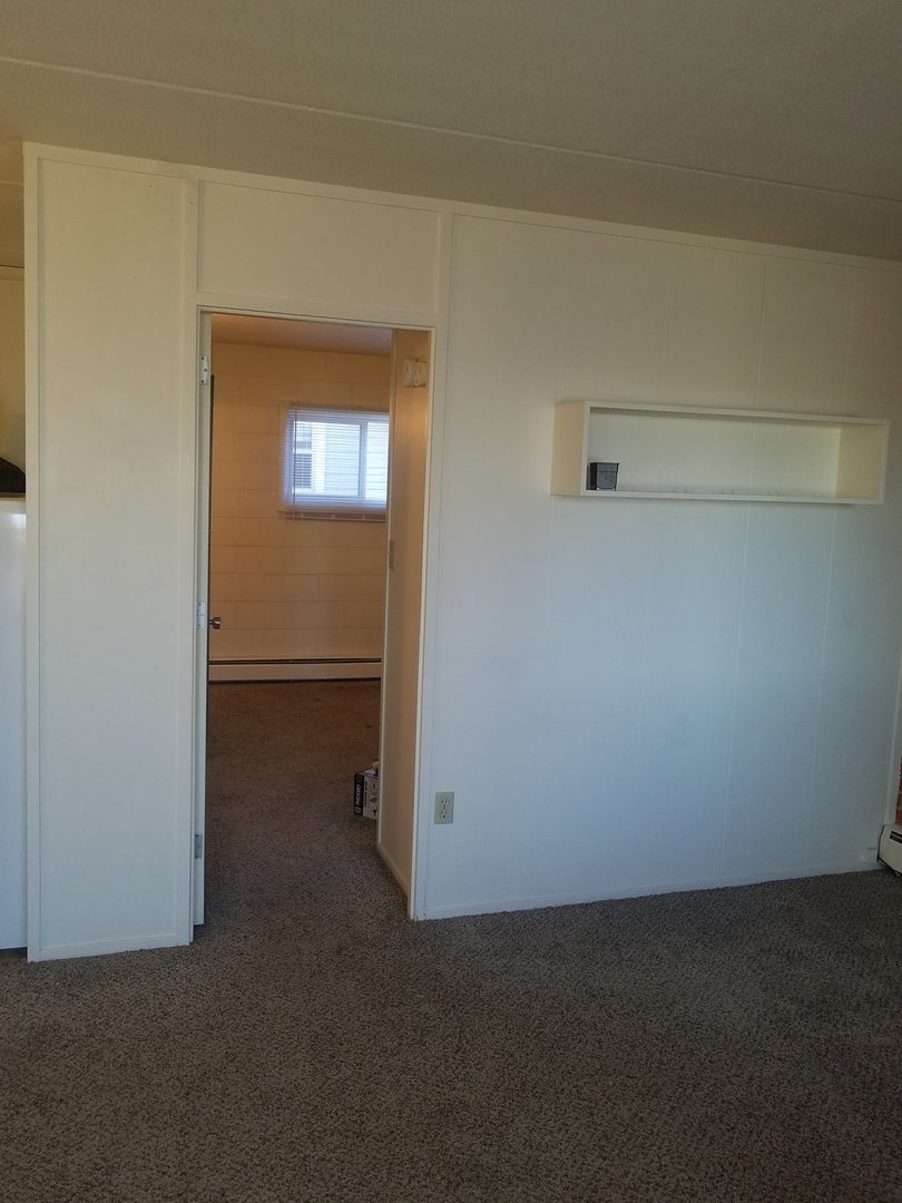 One bedroom apartment available June 4th. It is a ten unit building. The building has off street parking and coin op laundry. The living room and bedroom have carpet. The kitchen has vinyl flooring and the bathroom has tile. The bathroom has a full tub with shower. The rent is 675.00 plus electric and the pre-lease deposit is 775.00. Heat, water, sewer and trash are included. The initial lease is eight months and month to month after that. Pets are allowed on a case by case basis and there is a non-refundable pet fee