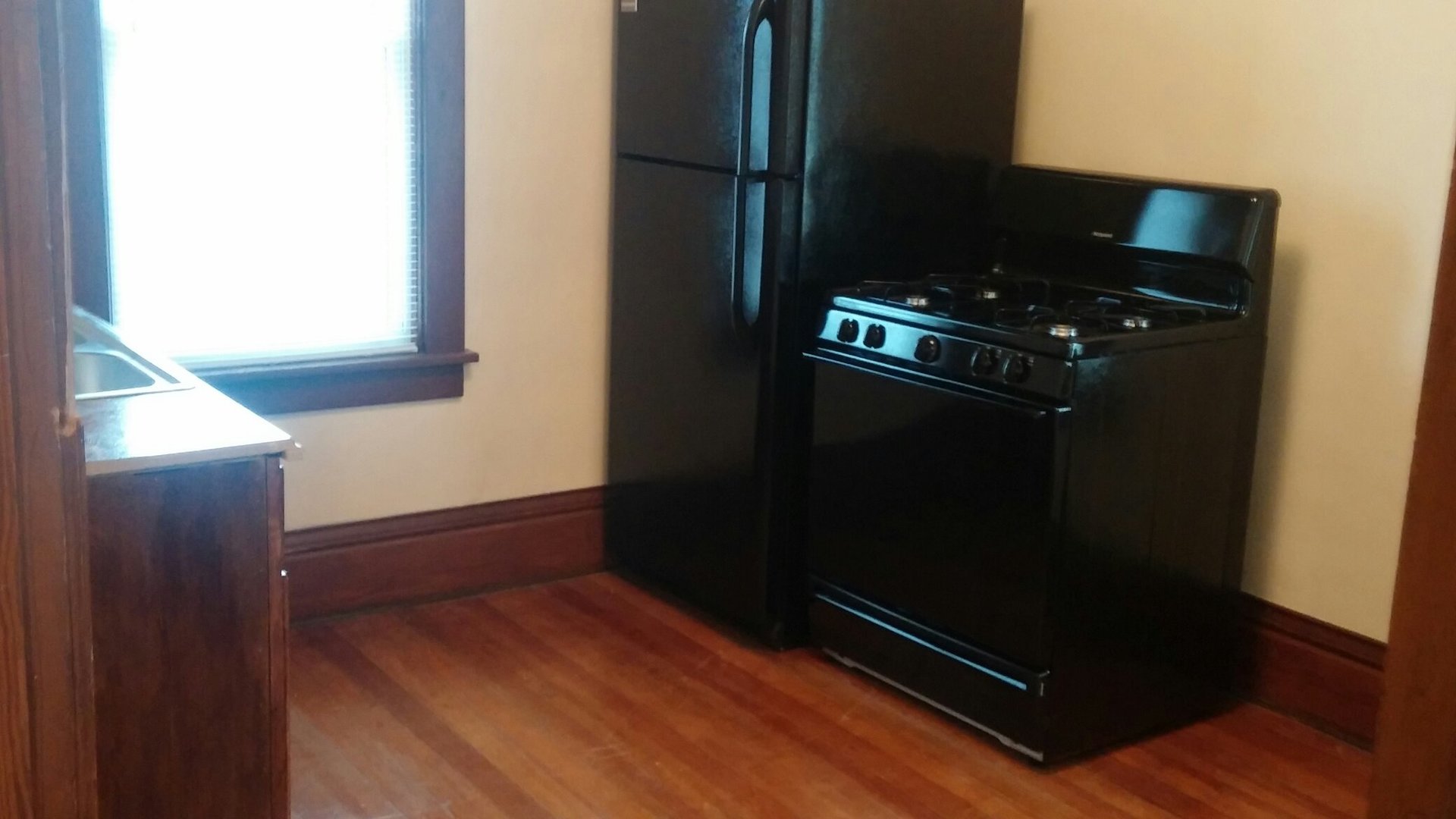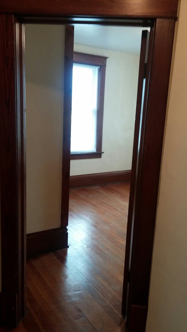 Two bedroom one bath apartment in a three unit building available April 1st. It is on the second floor. It has hardwood flooring though out except the bathroom has vinyl. The bathroom does have a full tub shower. There is a patio in the backyard. The rent is 900.00 plus electric. The pre-lease deposit is 1000.00. Pets are allowed on a case by case basis and there is a one time non-refundable pet fee. It is available March 10th. The initial lease is six months and month to month after that.