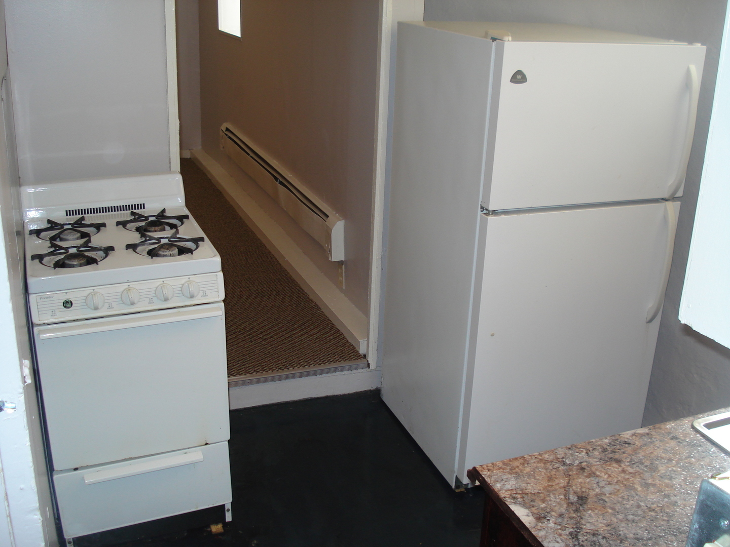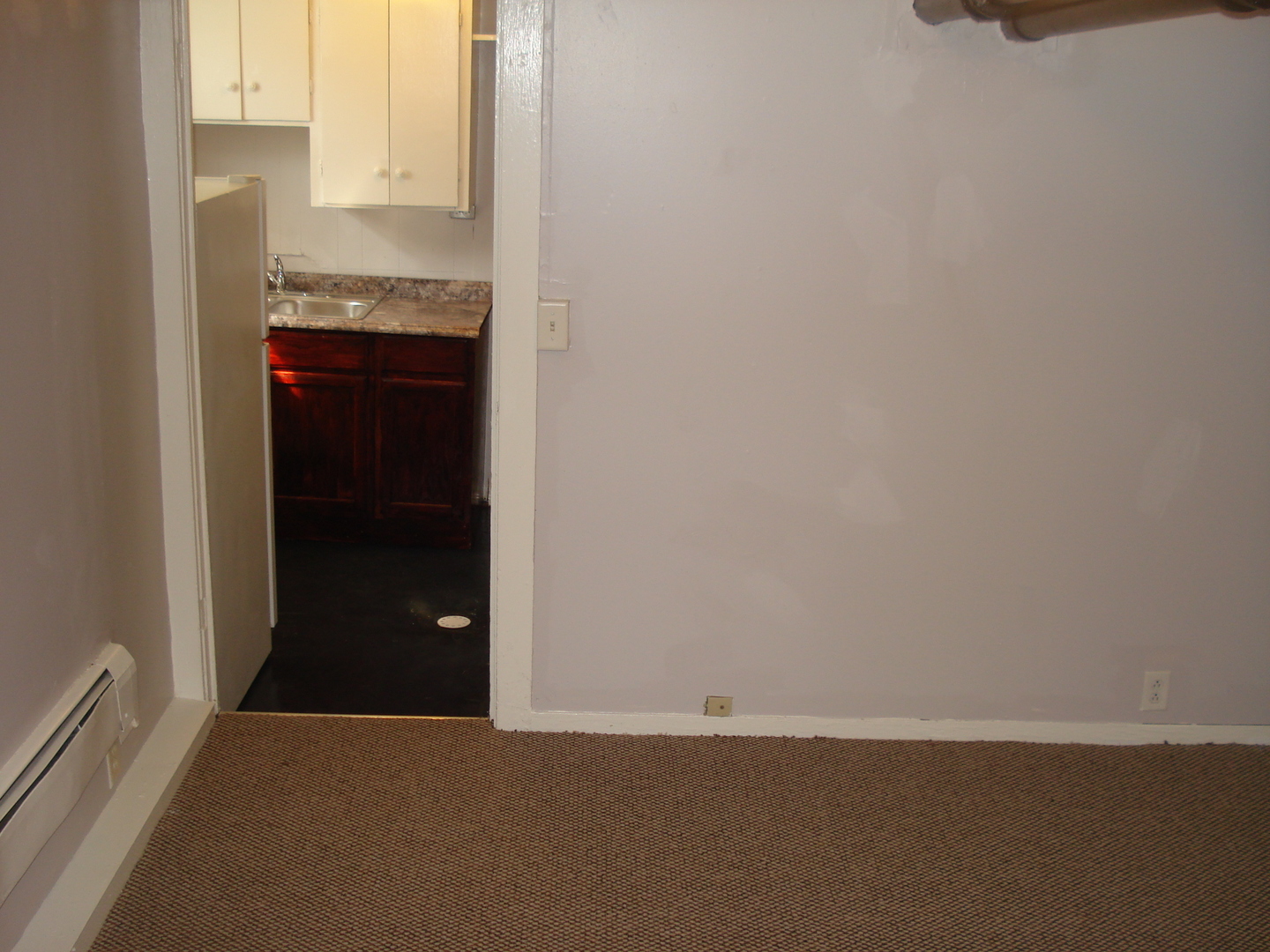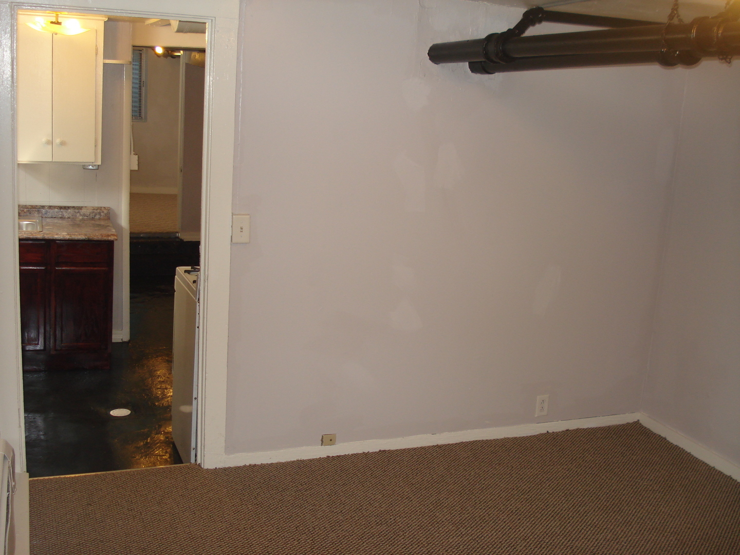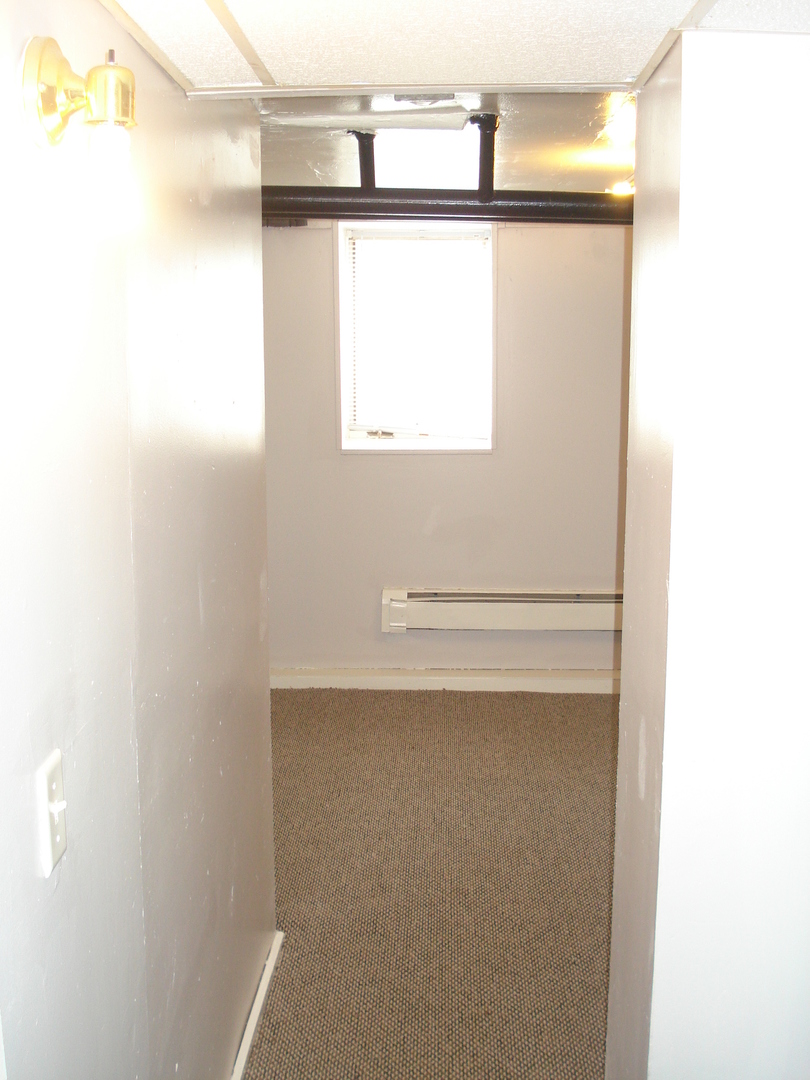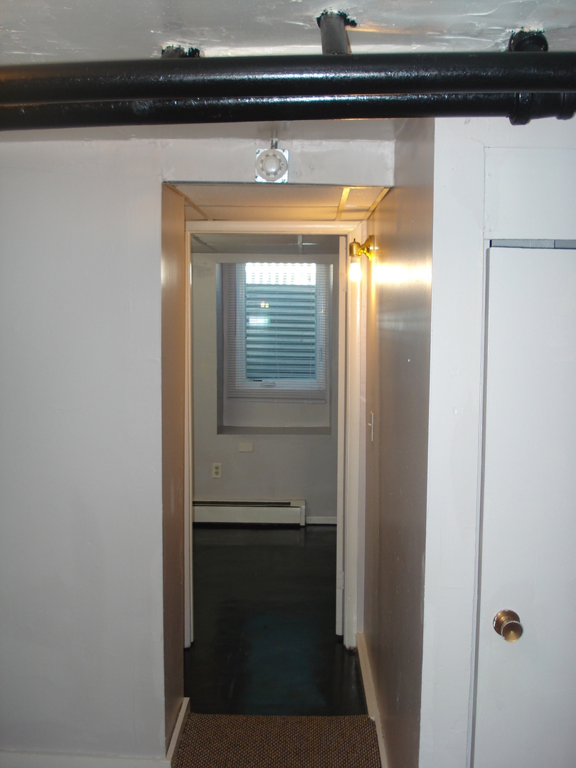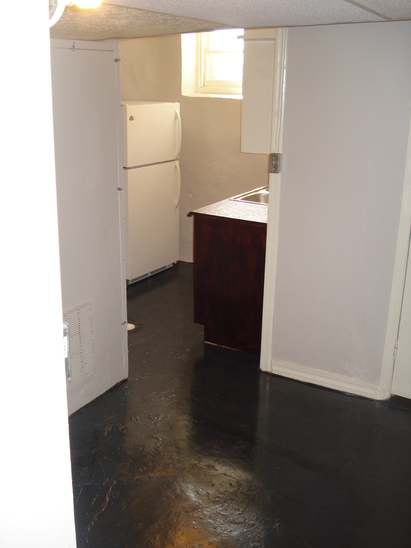 Two bedroom apartment in a five unit building. The apartment is in the lower level. One bedroom has carpet as does the living room. The kitchen, and bathroom have stained concrete flooring. The bathroom has a shower, but no tub. There is coin op laundry in the building, off street parking and secure entry doors. The initial lease is six months and month to month after that. The rent is $750.00 plus electric and the pre-lease deposit is$850.00. Heat, water, sewer and trash are included. Pets are allowed on a case by case basis and there is a one time pet fee.